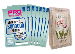 Trippelskrapet är skraplotten som ger dig chansen att skrapa fram vinster från 25 kr upp till 3 miljoner kr. Allt överskott går till PROs arbete med att förbättra tillvaron för Sveriges pensionärer.