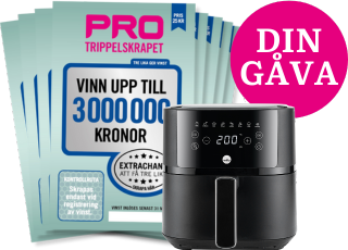 Trippelskrapet är skraplotten som ger dig chansen att skrapa fram vinster från 25 kr upp till 3 miljoner kr. Allt överskott går till PROs arbete med att förbättra tillvaron för Sveriges pensionärer.