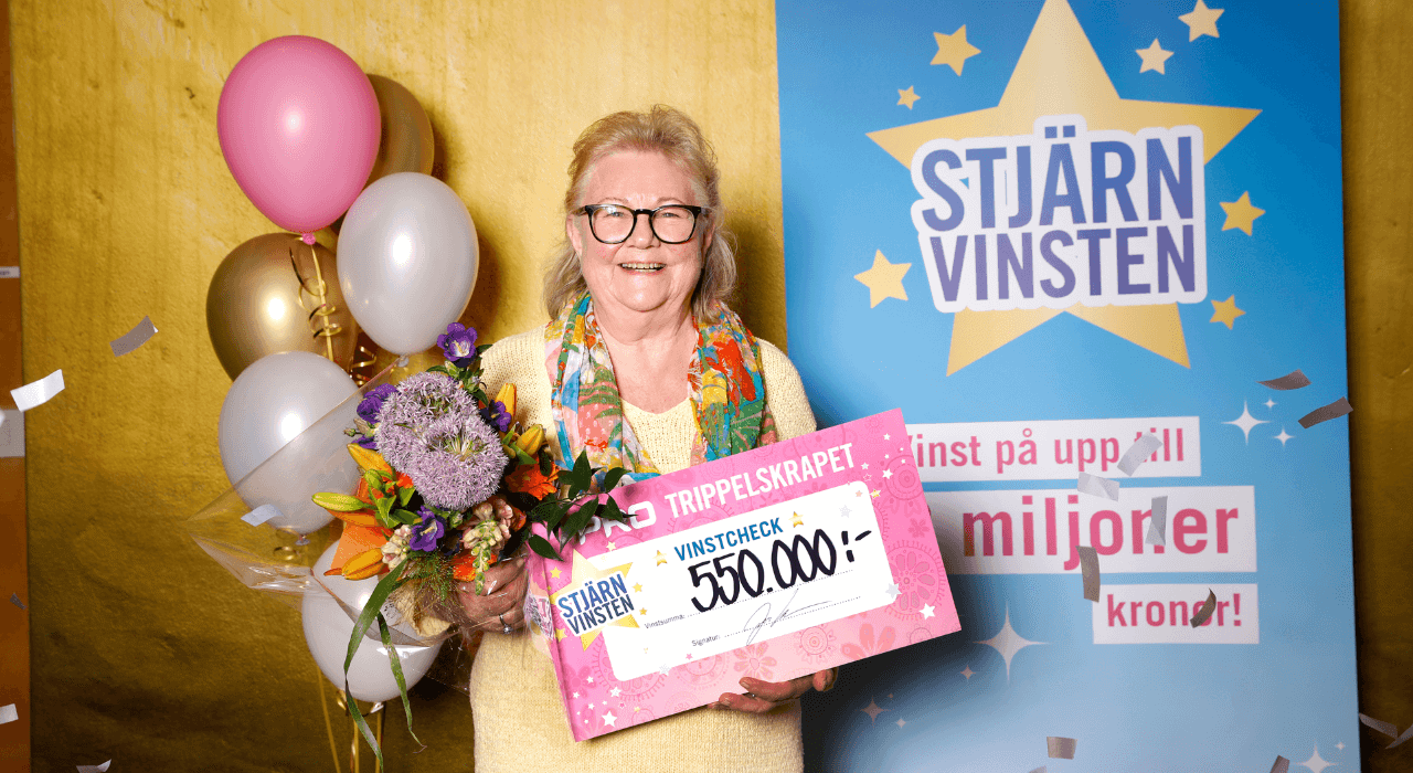 – Det blev 550 000 kronor och jag är jätteglad. Jag kan knappt prata om vinsten utan att gråta, jag är alldeles blank i ögonen nu också, ler Gunilla och berättar att hennes vinnarresa till Stockholm blev ett minne för livet.